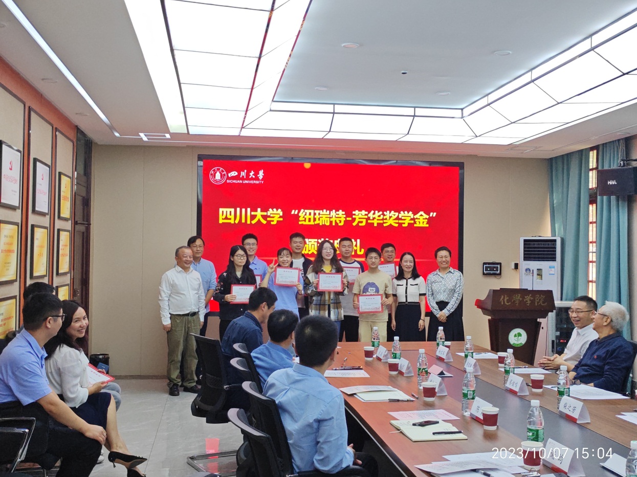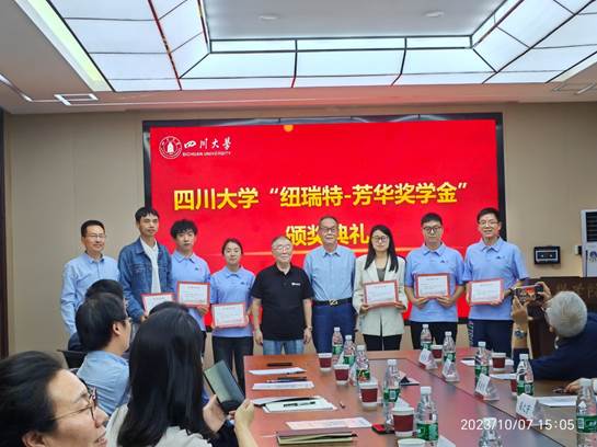 10月7日,在四川大学化学馆122会议室举行了首届四川大学“纽瑞特-芳华奖学金”颁奖典礼。中国科学院柴之芳院士,纽瑞特创始人钱积惠研究员、总经理蔡继鸣研究员,四川大学教育基金会陈森秘书长、贾秀娥副秘书长,体育网足球即时比分