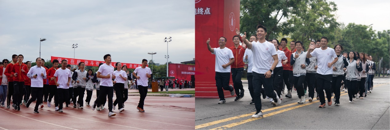 27日上午在运动会开幕式后,谢均书记和肖波副书记带领同学们一起环校跑,跑步结束后合影留念,展现了球琛足球即时比分