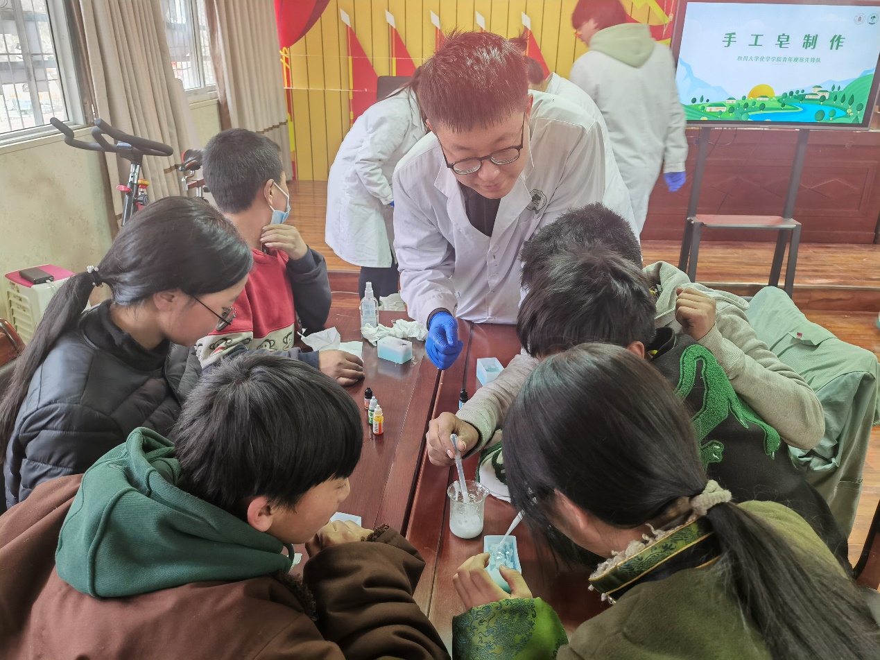 团委副书记张若一、本科生辅导员浩涛涛带领团队成员前往阿坝州壤塘县壤古村,辅导学生课程作业,开展化学科普讲解及知识问答竞赛,指导青少年亲手制作叶脉书签和特色手工皂,发挥化学专业特长助力乡村振兴。