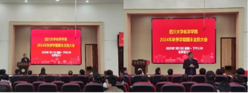 2024年秋季学期期末全院大会暨“从教三十年”纪念品颁发仪式在化学馆321会议室成功举行。会议由学院党委书记谢均主持。