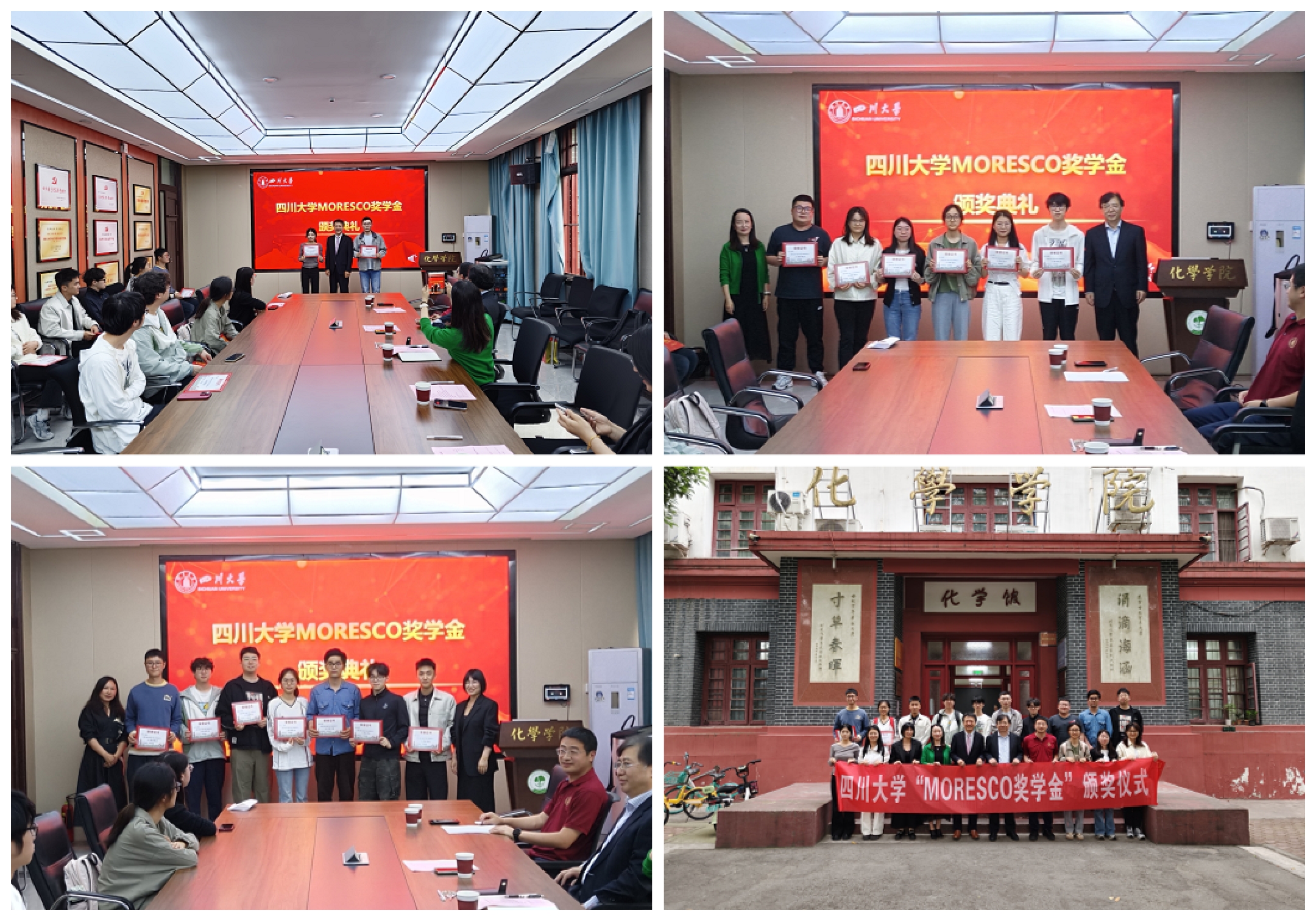 MORESCO奖学金颁奖典礼在化学馆122会议室顺利举行。株式会社MATSUKEN原社长大村洋一先生,株式会社MORESCO执行役员、莫莱斯柯贸易(浙江)有限公司、莫莱斯柯(浙江)功能材料有限公司董事长刘英进校友,莫莱斯柯中国研发中心经理杨帆校友,体育网足球即时比分-球琛足球即时比分