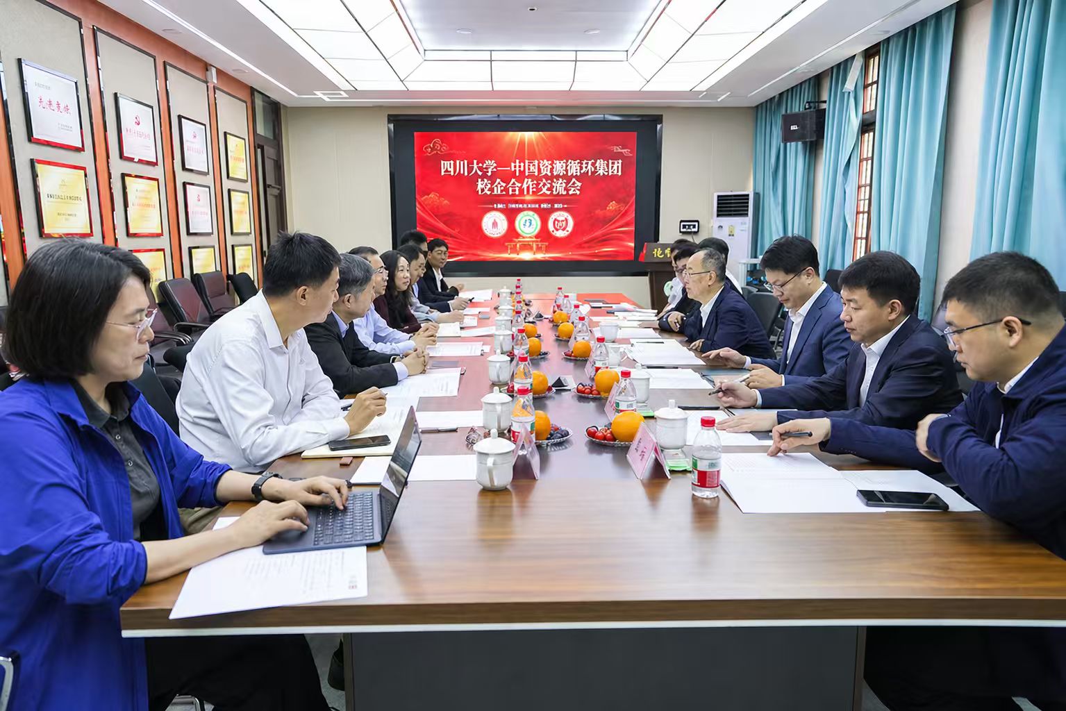韩辉感谢学校与环保高分子实验室的热情接待。他表示,中资环高度重视与高校的合作,愿同四川大学一道,携手推进相关产业创新与可持续发展。随后,中资环科技创新与数字化部总经理柯艳春详细介绍了公司的成立背景、发展愿景及产业布局,并期待未来在科研协同、人才培养、产学研深度融合、合作创建国家级平台等方面与学校开展更紧密合作,共同助力资源循环体系建设与技术创新。