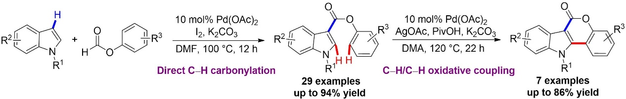 50) Jie Wu, Jingbo Lan,* Siyuan Guo, Jingsong You.* Pd-Catalyzed C−H carbonylation of (hetero)arenes with formates and intramolecular dehydrogenative coupling: a shortcut to indolo[3,2-c]coumarins. Org. Lett., 2014, 16, 5862−5865.