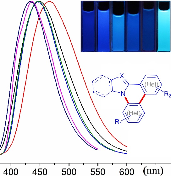 55) Lipeng Yan, Dongbing Zhao, Jingbo Lan,* Yangyang Cheng, Qiang Guo, Xiaoyu Li, Ningjie Wu, Jingsong You.* Palladium-catalyzed tandem N–H/C–H arylation: regioselective synthesis of N-heterocycle-fused phenanthridines as versatile blue-emitting luminophores. Org. Biomol. Chem., 2013, 11, 7966–7977.