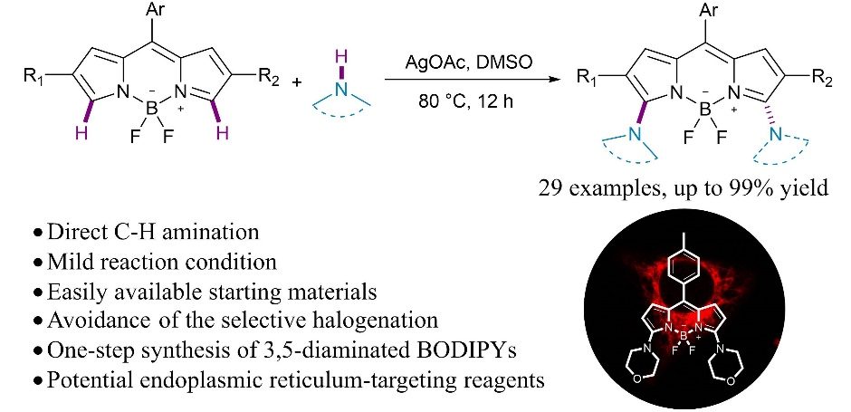 32) Huaxing Zhang, Xingyu Chen, Jingbo Lan,* Yanhong Liu, Fulin Zhou, Di Wu,* Jingsong You.* Silver-mediated direct C–H amination of BODIPYs for screening endoplasmic reticulum-targeting reagents. Chem. Commun. 2018, 54, 3219–3222.