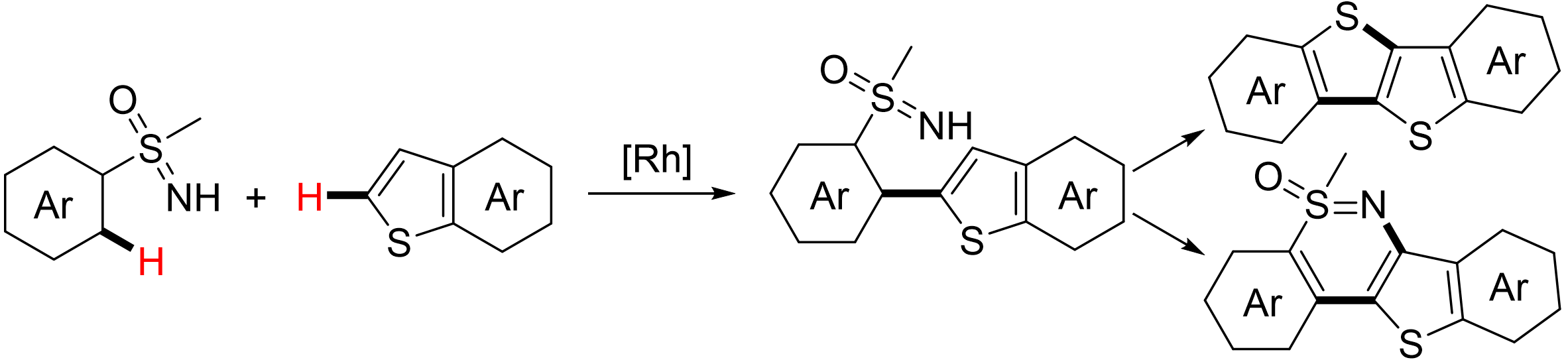 13) Chengyong Yang, Zheng Liu, Rui Cheng, Jiping Du, Chunhao Ran, Di Wu,* Jingbo Lan.* Rh(III)-catalysed C–H/C–H cross-coupling of S-aryl sulfoximines with thiophenes: facile access to [1]benzothieno[3,2-b][1]benzothiophene (BTBT) and benzothiazines. Chem. Commun. 2022, 58, 7952–7955.