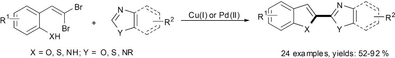 61) Xurong Qin, Xuefeng Cong, Dongbing Zhao, Jingsong You, Jingbo Lan,* One-pot synthesis of benzofused heteroaryl azoles via tandem C-heteroatom coupling/C–H activation of azoles. Chem. Commun., 2011, 47, 5611–5613.