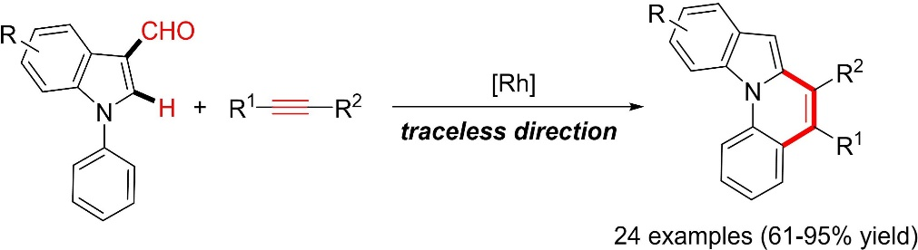 45) Xingyan Liu, Xiaoyu Li, Hu Liu, Qiang Guo, Jingbo Lan,* Ruilin Wang, Jingsong You.* Aldehyde as a traceless directing group for Rh(III)-catalyzed C–H activation: a facile access to diverse indolo[1,2-a]quinolines, Org. Lett., 2015, 17, 2936–2939.