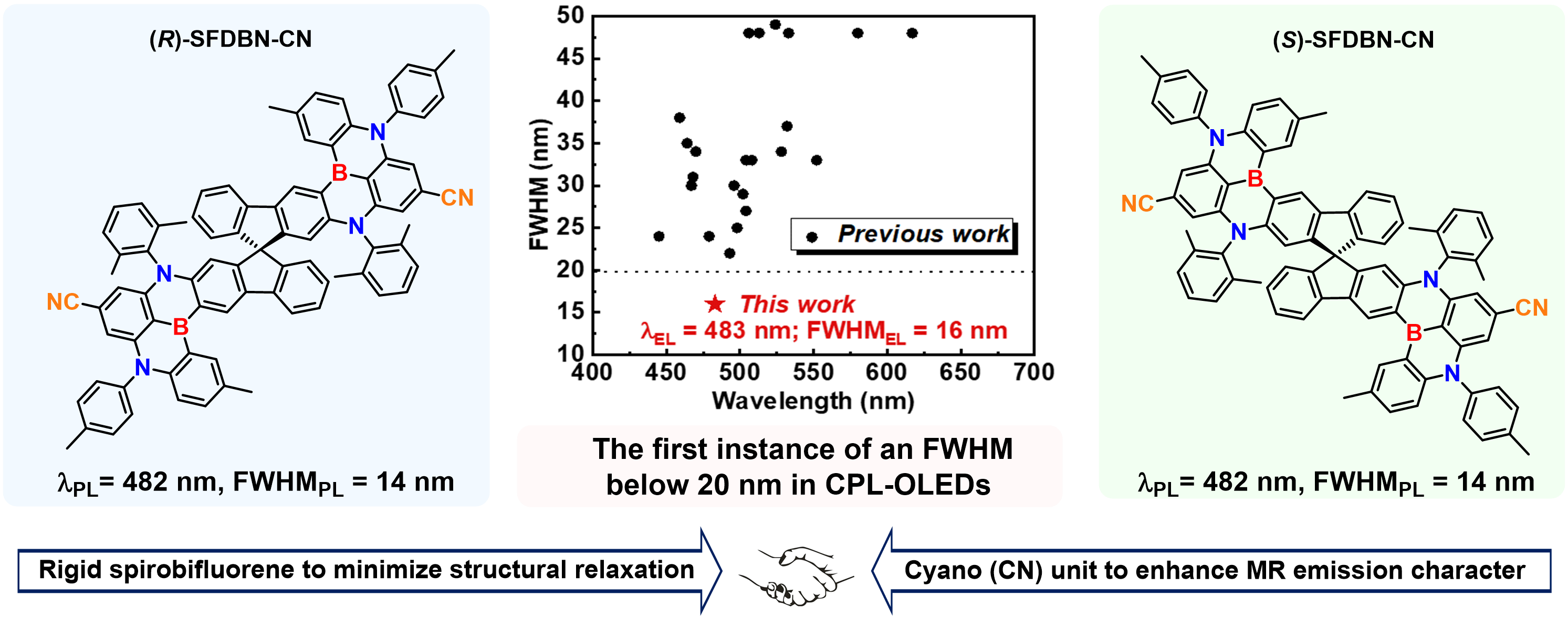 2) Hu Cheng, Chen-Hao Guo, Meng Li,* Yusong Guo, Zhangyi Fu, Junjie Liu, Yudong Yang, Jingbo Lan,* Zhengyang Bin.* Facile access to spirobifluorene-fused chiral multi-resonance materials with ultra-narrowband blue emission. Sci. Bull., 2025, 70, 529–535.