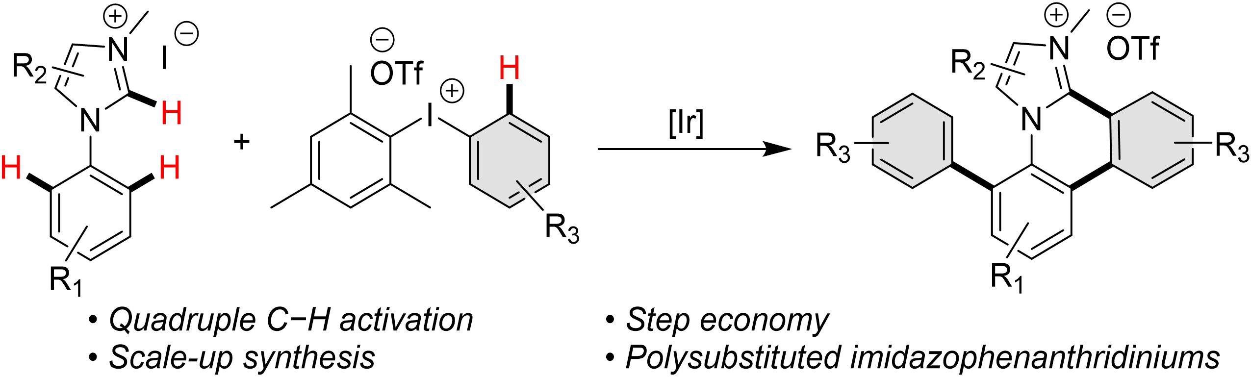 12) Zheng Liu, Qian Li, Chengyong Yang, Xuesong Zheng, Di Wu,* Ge Gao, Jingbo Lan.* Ir(III)-catalyzed quadruple C–H activation of N-arylimidazolium and diaryliodonium salts: facile access to polysubstituted imidazo[1,2-f]phenanthridiniums. Chem. Commun. 2022, 58, 7042–7045.