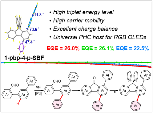 6) Qian Li, Zhiqian Yu, Qianhui Liu, Yusong Guo, Zhangyi Fu, Yudong Yang, Zhengyang Bin, Di Wu,* Jingbo Lan.* Crafting 1,4-diaryl spirobifluorene hosts in OLEDs via interannular C–H arylation: synergistic effects of molecular linearity and orthogonality. Chem. Sci. 2024, 15, 10547–10555.