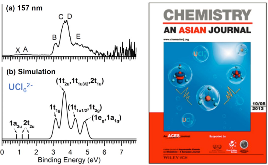 30.Jing Su, Phuong Diem Dau, Chao-Fei Xu, Dao-Ling Huang, Hong-Tao Liu, Fan Wei, Lai-Sheng Wang*, Jun Li*. "A Joint Photoelectron Spectroscopy and Theoretical Study on the Electronic Structure of UCl5– and UCl5", Chem. Asian. J., 2013, 8(10), 2489-2496. (Inside Cover)