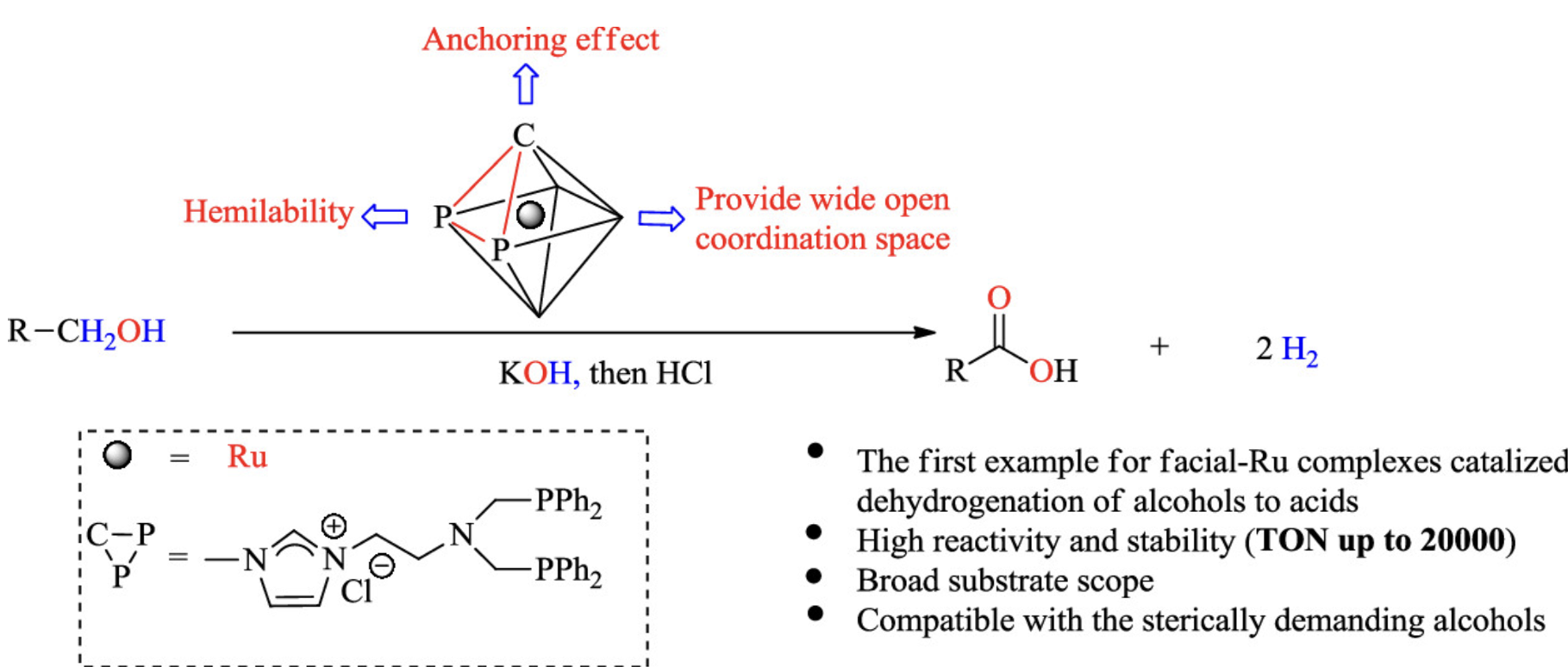 12. Chen, Y.; Cui, T.; Chen, H.;Zheng, X.; Fu, H.*; Li, R.*, Pyrazole–pyridine–pyrazole (NNN) ruthenium(ii) complex catalyzed acceptorless dehydrogenation of alcohols to aldehydes. Dalton Transactions 2023, 52 (35), 12368-12377.