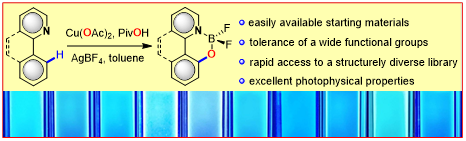 8. Guangying Tan, Malte L. Schrader, Constantin Daniliuc, Felix Strieth-Kalthoff, and Frank Glorius*, C–H activation based Copper-Catalyzed One-Shot Synthesis of N,O-Bidentate Organic Difluoroboron Complexes. Angew. Chem. Int. Ed. 2020, 59, 21541 –21545.