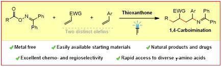 5. Guangying Tan, Mowpriya Das, Hyeyun Keum , Peter Bellotti, Constantin Daniliuc and Frank Glorius*, Photochemical Single-Step Synthesis of β-Amino Acid Derivatives from Alkenes and (Hetero)arenes. Nat. Chem. 2022, 14, 1174-1184.