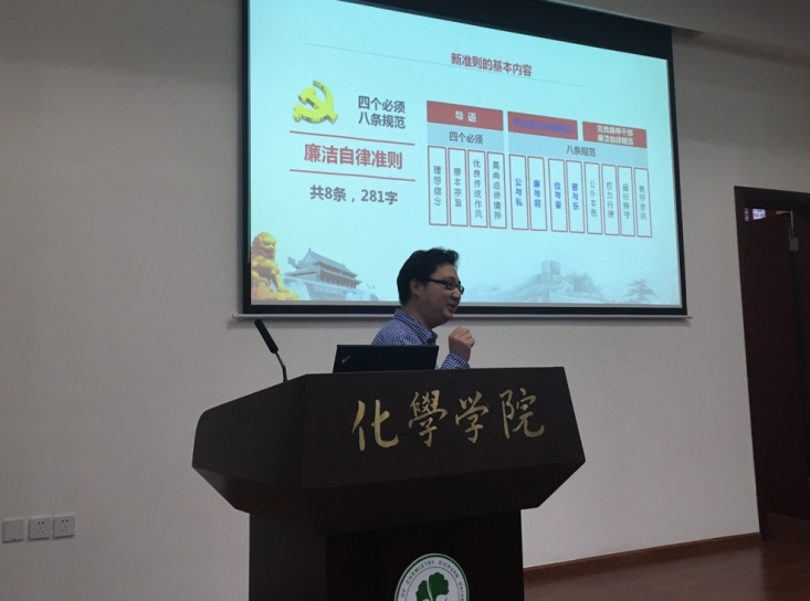 4月21日下午,四川大学廉政法规宣讲团在化学馆学术报告厅为球琛足球即时比分 党员举行了一场《中国共产党章程》、《中国共产党廉洁自律准则》和《中国共产党纪律处分条例》学习报告会。校纪委监察处张学龙副书记主持报告会并讲话。马克思主义学院张洪松老师作了专题宣讲报告。体育网足球即时比分 党政领导、党支部书记和全体学生党员参加了学习报告会。