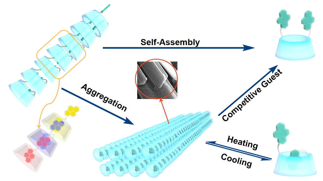 圆偏振发光(CPL)材料因其在3D显示、信息加密、生物检测和传感等方面的潜在应用而引起科学家的高度关注。手性有机发色团具有成本低、光物理性质可调节和易衍生化等特点,成为了CPL材料研发的较优选择。然而,手性有机分子的手性光学活性通常较弱,其不对称因子gabs和glum通常小于10-3。近年来,化学家们发展了包括将有机生色团引入配位络合物、共轭聚合物或超分子组装中等多种策略用于提高有机分子的手性光学活性。其中,超分子组装体通常是基于非共价相互作用的动态系统,这既为CPL材料的可调控性带来更多的可能性,但也往往因为其手性限制作用不够强,影响了发色团的手性光学活性。