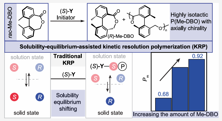 相较于无规聚合物,立构规整聚合物往往具有更好的结晶性与耐热性等优势。通过催化剂设计对手性外消旋单体进行动力学拆分聚合是制备等规聚合物的一种重要手段。然而,动力学拆分过程中,由于优势构型单体的消耗,其聚合速率随之降低,导致拆分效率的降低。这一直是困扰动力学拆分过程的一大挑战。