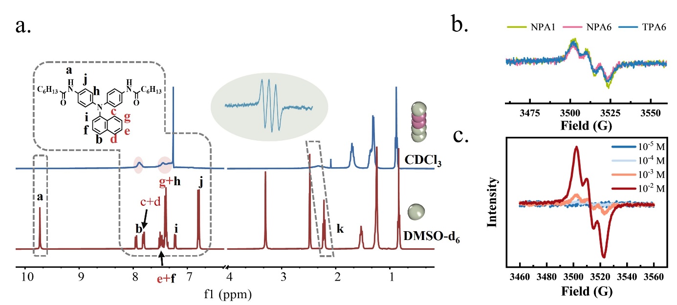 近日,四川大学黄艳教授团队开发了新型光引发剂NPA6(图1)。NPA6在保留了NPA的磷光特性的同时,展现了独特的光生自由基能力(图2),可产生含自由基和中性分子的超分子聚集体。