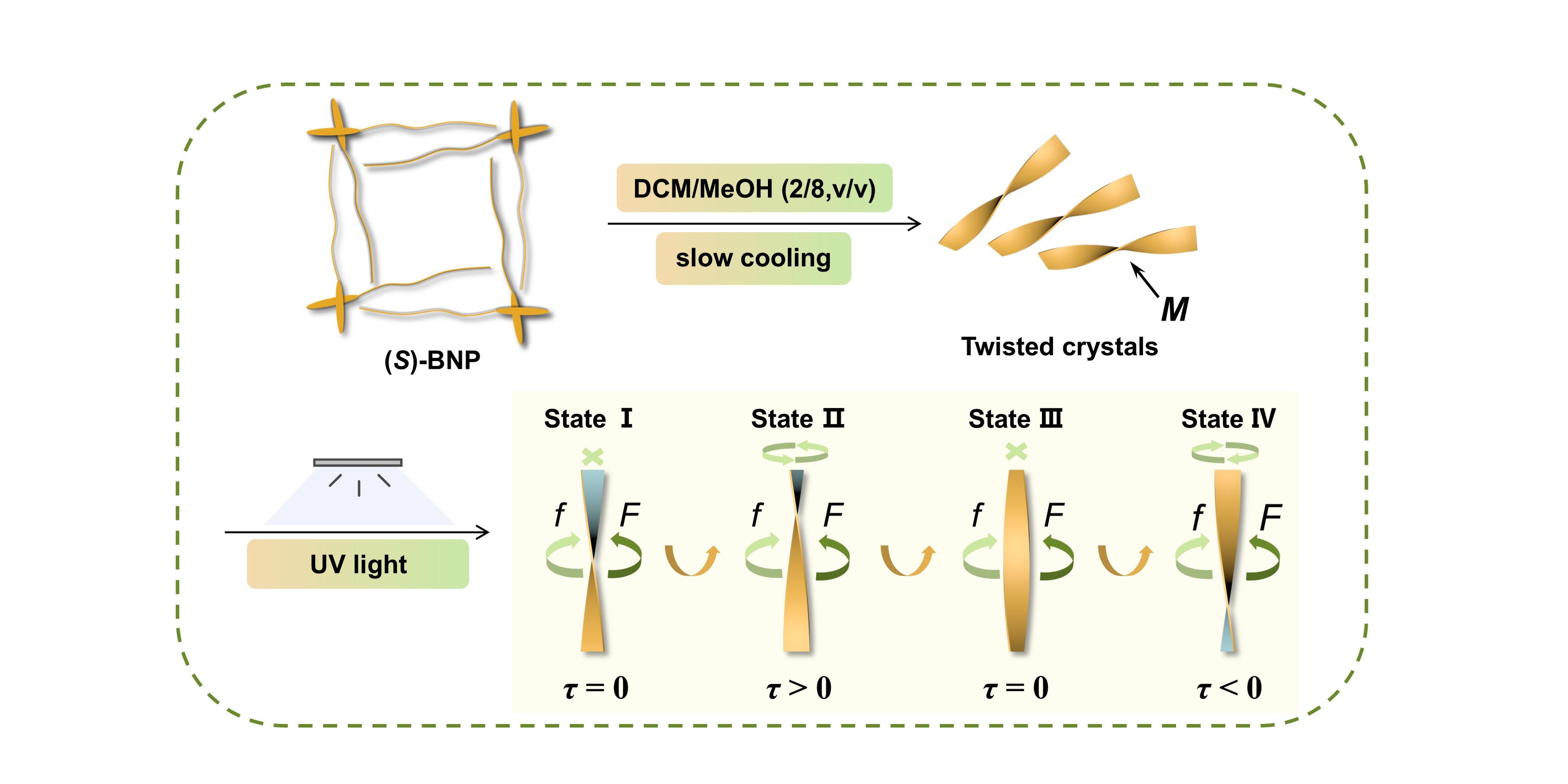 四川大学于珊珊团队通过缓慢冷却的方案制备具有宏观手性结构的螺旋组装体,实现了紫外光照射下的微米尺度连续原位旋转运动。团队通过精心设计联萘-偶氮苯分子,并进一步精确调控其自组装条件,包括溶剂的浓度、冷却速率、溶剂类型和极性等,成功制备出宽数十微米、长数百微米的宏观同手性螺旋组装体(BNP twist)。组装体在紫外光照下展现出围绕固定轴的连续原位旋转运动,其速度可由光强和尺寸调控,方向受螺旋几何结构导致的光照非对称性影响。该研究在实现微纳尺度的复杂持续运动上迈出了重要的一步,为精密光机械元件、自适应机器人和可持续能源收集器件的设计提供了一种新的思路。