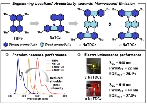 本研究提出了一种简便有效的芳香性定域化策略,为发展新型多环芳烃类窄光谱发光材料提供了重要的分子设计思路。