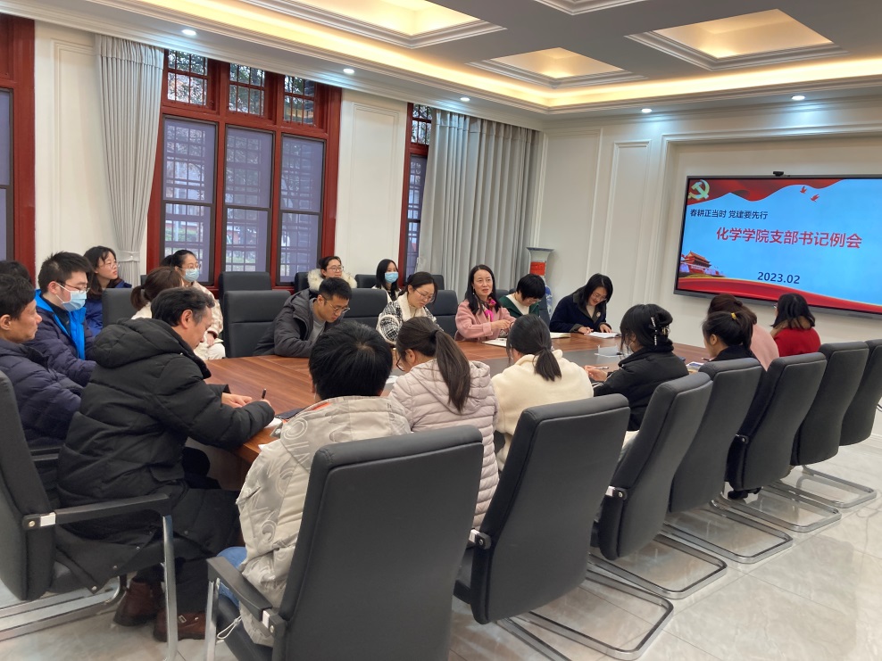 党支部书记例会制度》,就支部书记例会制度做出具体要求和部署。接着,为大家讲解了习近平总书记在学习贯彻党的二十大精神研讨班开班式上的重要讲话精神,中国式现代化理论是党的二十大的一个重大理论创新,是科学社会主义的最新重大成果,要求正确理解和大力推进中国式现代化。之后,传达学习了四川大学2023年度新学期工作布置会和双代会精神,总结学院在过去一年里取得的成绩,布置了新学期的重点工作,鼓励大家继续发扬优良传统,撸起袖子加油干,充分发挥好党员先锋模范作用。其后,对支部书记落实好全面从严治党责任作了具体要求,切实推动全面加强党的领导在基层得到落实。最后,党政办相关人员就近期党建相关工作进行了培训。