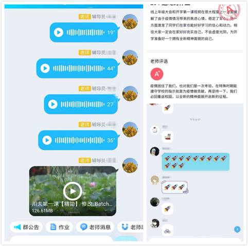 会后,同学们纷纷表示,线上“年级大会”方便高效,效果明显;“开学第一课”视频内容丰富实用,观看后收获颇丰。同学们说,我们感受到了学校和老师对我们的关心,也更加坚定了夺取抗击疫情斗争胜利的信心。我们一定会认真执行学校的决策部署,积极配合老师完成线上教学工作。此时此刻,我们想念同学,想念老师,想念川大校园。虽然相距千里,但我们的心始终在一起,让我们共同期盼春暖花开之时的再次相聚。