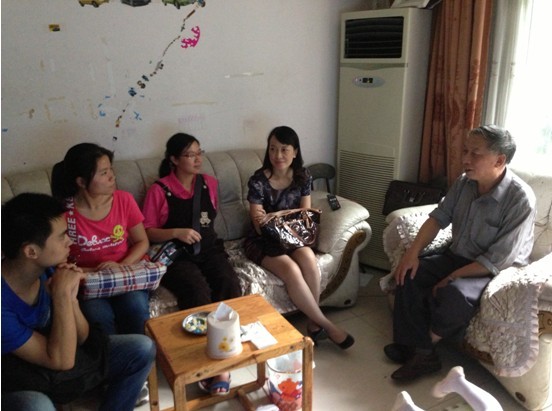 来到退休教师家中,大家一起首先询问了退休教师的近况,学生代表们也表达了对老师们的崇敬和感激之情。退休教师对于学院师生的到来也是非常的高兴和热情。