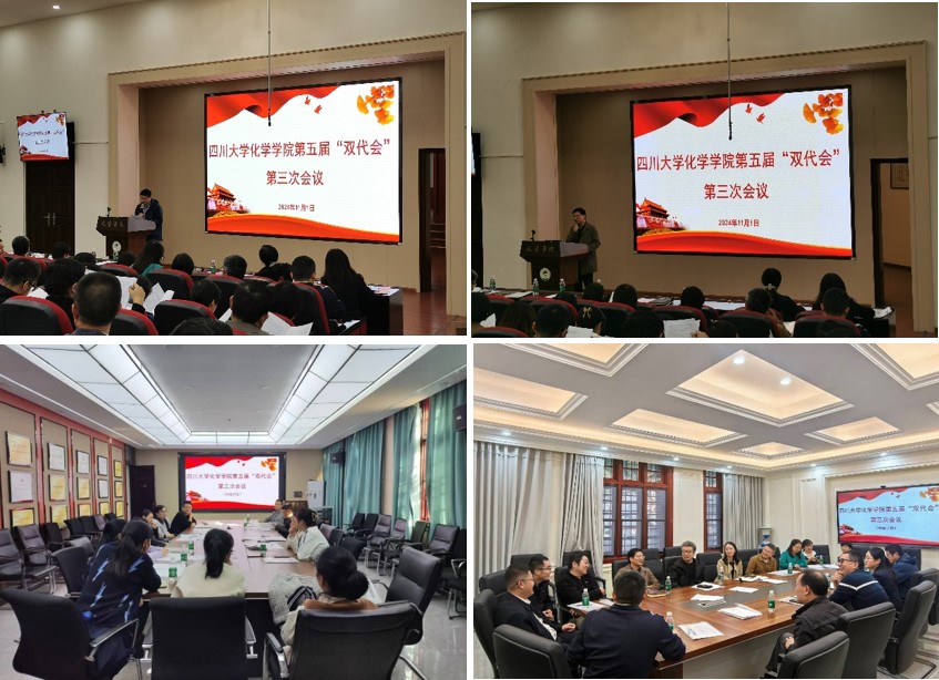 第五届“双代会”第三次会议在化学馆321报告厅隆重召开。本次会议的主题是:凝心聚力 赓续前行 为建设教育强国贡献川大化学力量。学院双代会代表52人参加了会议。会议由学院党委副书记肖波主持。