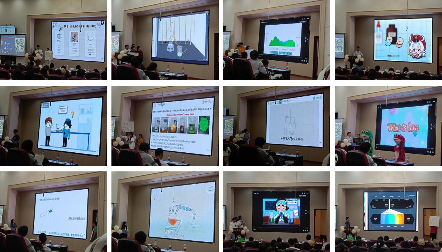 大赛旨在激发同学们对专业实验技能的学习热情,培养同学们的创新精神、激发同学们的创新能力。比赛自2023年3月正式拉开帷幕,经过初赛的激烈角逐,最终有12支团队凭借独特风格和创意的作品突出重围,晋级决赛,分别是Snip&Click(咔擦卡擦)队、“化,你太美队”、画化的chembaby队、摘星队、你说对不队、成键电子队、CNS队、烤乳组、冲鸭队、人民当家做组、霹雳霸王龙队和碱基互补配队。