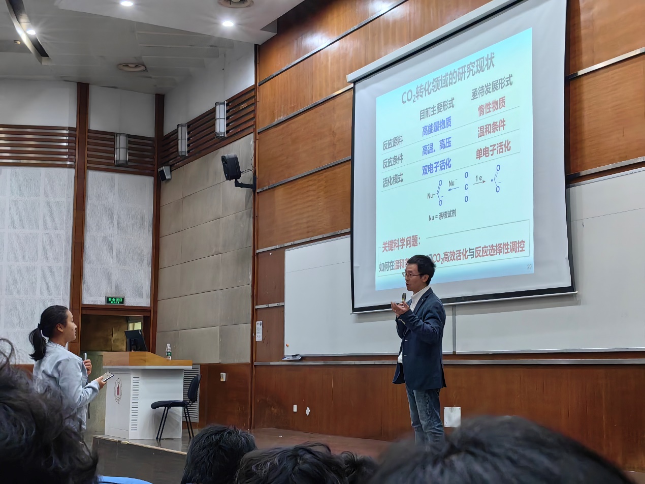 2023级全体本科生带来了“创新思维与交流”系列第四次讲座:“创新思维在二氧化碳资源化利用中的运用”。