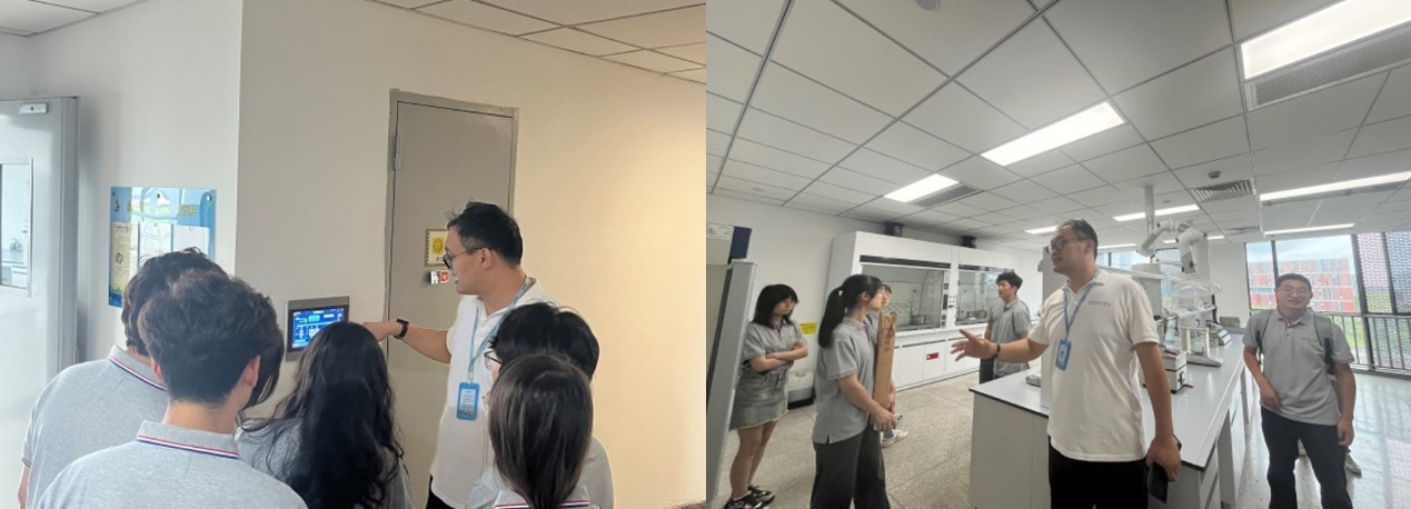 接着,在谢经理的带领下,同学们参观了各类实验室。参观过程中,师生们见识了最先进的实验设备和技术应用,更加细致地了解了公司的具体科研项目和研究方向。同学们对各种精密仪器、复杂实验产生了浓厚的兴趣,积极提问并与科研人员进行互动交流。