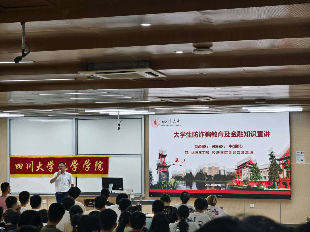 2024年9月9日,四川大学江安校区综合楼C207举行了一场别开生面的主题宣讲活动。本次活动由交通银行王红明主任主讲,旨在提高大学生防诈骗意识,树立正确的消费观,为体育网足球即时比分
