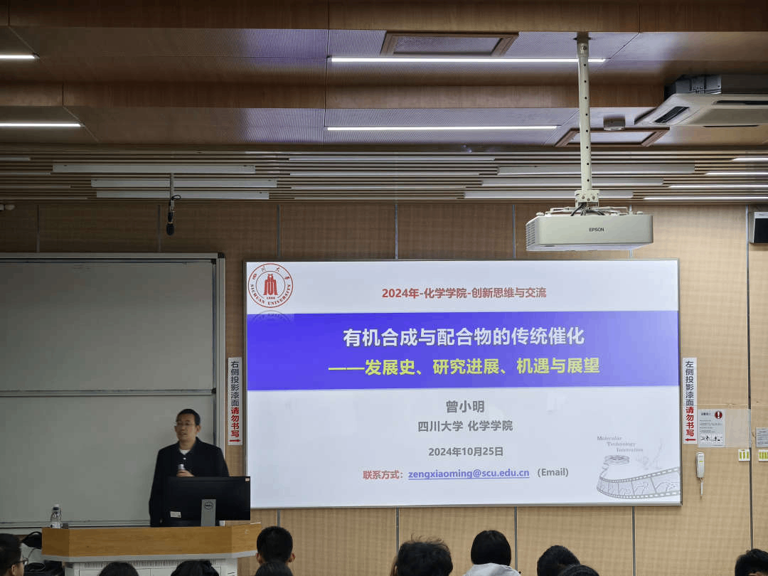 曾小明教授为学院 2024 级全体本科生开展创新思维与交流讲座——有机合成与配合物的传统催化。
