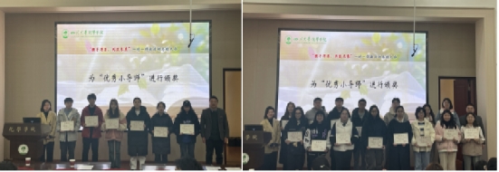 接下来,杨君老师宣读了本次伴读活动获得“优秀小导师”的名单:分别有6位研究生和15位本科生获奖。杨君老师鼓励同学们再接再厉,继续保持优秀小导师的模范作用。肖波老师和杨君老师一起为获奖同学颁奖。