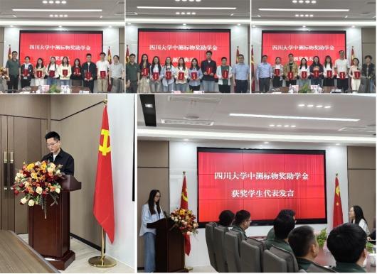 院长、分析测试中心主任吕弋向四川中测标物科技有限公司对四川大学人才培养的支持及中测标物奖助学金的设立表达衷心感谢;对获奖同学致以祝贺,充分肯定了他们的学习成果与突出表现,寄语青年学子要踏踏实实学习、研究;最后祝愿四川中测标物科技有限公司蒸蒸日上,越来越好,希望校企双方在人才培养、技术攻关等方面结出更多硕果,在国家经济主战场、科技主战场始终有我们的声音。