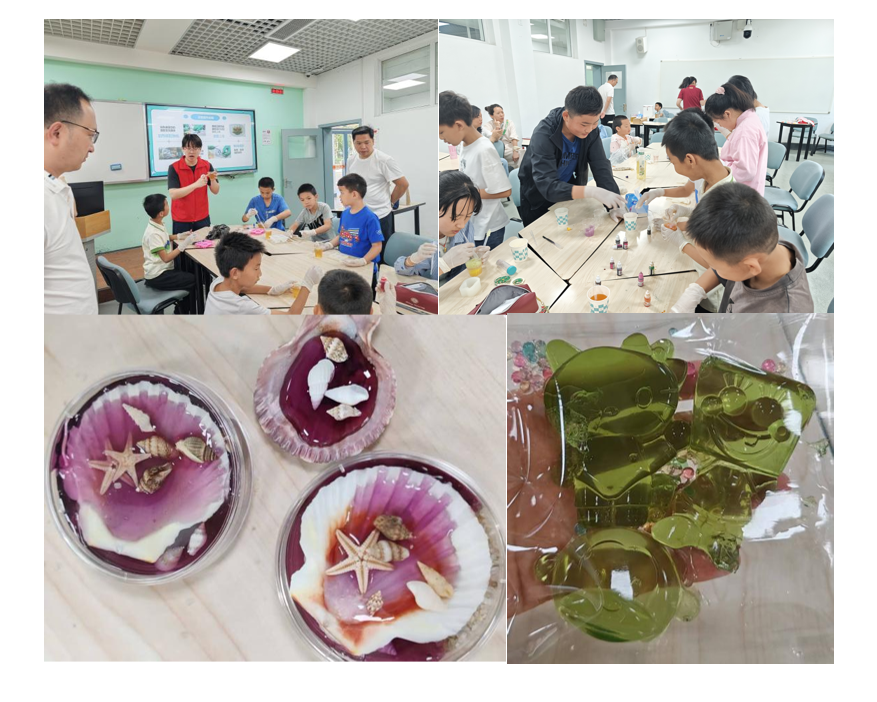 科普讲座结束后,由邴彦博、樊佩如、孙宇琪和陈家露四位同学带领小朋友们进行化学趣味实验。首先以生活中海绵吸水为例,引导小朋友们去思考吸水和保水的区别,进而引出水凝胶的基本概念及其所具有的神奇性质。随后,小朋友们依次开展了“神奇的锁水精灵” “多彩的水宝宝” “DIY人造雪”三项趣味实验,深入领略水凝胶的奇妙特性。小朋友们不仅对实验操作充满兴趣,还积极发挥自主创意,对水凝胶进行调色和塑型。此次活动不仅传播了化学知识,更增进了小朋友们对于科学探索的热情。
