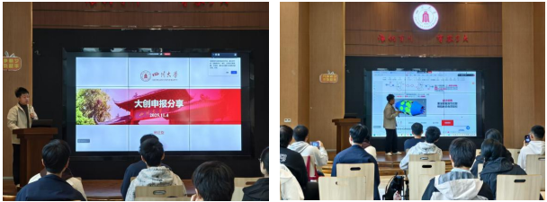 一年一度的大创申报工作的即将来临,为了让低年级同学们更好地了解大创的申报流程、经验等事宜,2025年11月4日中午,学院在四川大学江安校区22舍一楼报告厅面向大一、大二的同学开展了大创经验分享会。