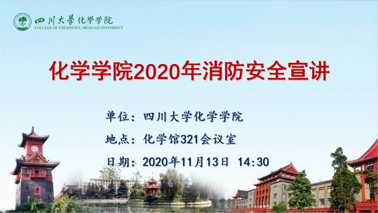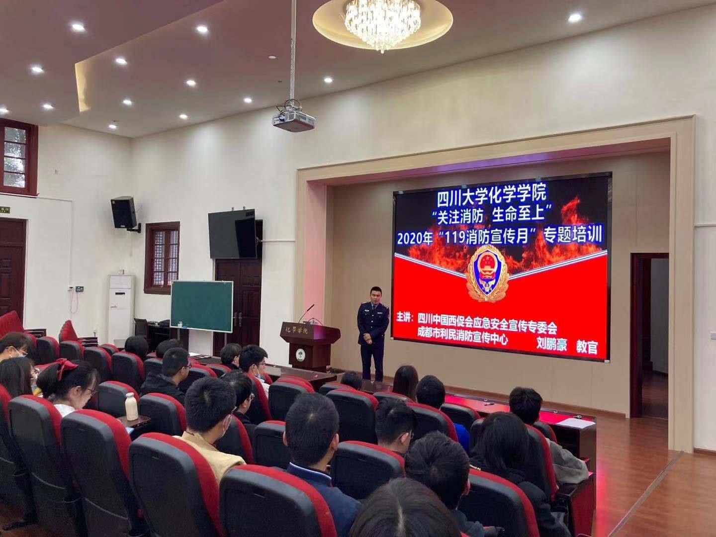 以“119”消防宣传月为契机,于2020年11月13日下午邀成都市利民消防宣传中心刘鹏豪教官在化学馆321进行了“关注消防,生命至上”为主题的2020年“119消防宣传月”专题培训。