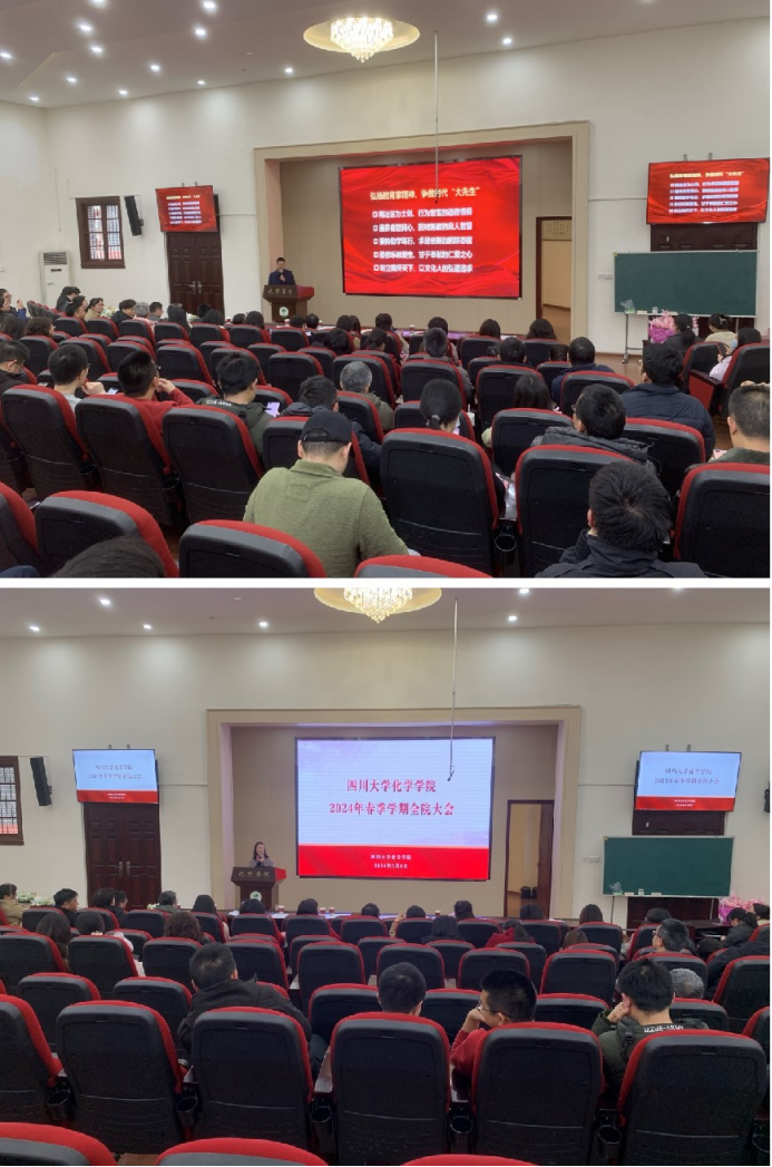 在全院大会上,刘波院长重点传达了学校2024年新学期工作布置会精神,结合学院实际,就2024年学校四项重点工作、贯彻落实学校九届三次全会“1+5”文件等的贯彻落实情况进行了传达。肖波副书记、马利建副院长、李坤副院长、李峰教授分别就学院学生工作、研究生培养和科学研究、实验室安全、教学与人才培养等方面进行了工作安排。最后,谢均书记就学院整体工作推进作了安排部署,对学院党建工作,特别是“四川高校党建工作标杆院系”创建、“三个一流”建设相关工作进行了详细布置。