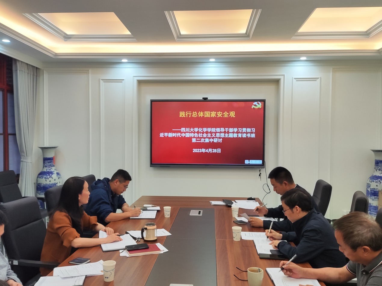 领导干部学习贯彻习近平新时代中国特色社会主义思想主题教育读书班第二次集中研讨在化学馆103会议室举行。全体领导班子成员、专职组织员、支部书记代表、学院主题教育工作组成员等参加。研讨会由学院党委书记谢均主持。