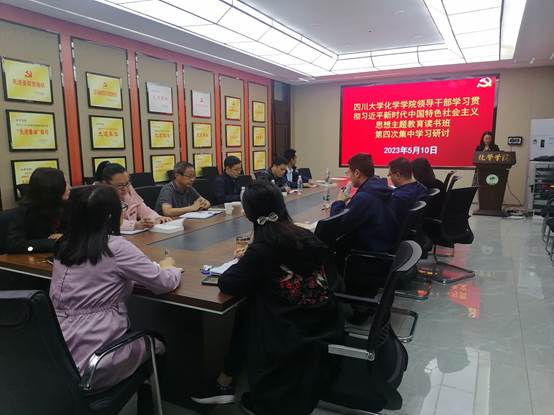 领导干部学习贯彻习近平新时代中国特色社会主义思想主题教育读书班第四次集中研讨在化学馆122会议室举行。学校主题教育第六指导组刘俐组长、联络人陈曦老师,学院全体领导班子成员、专职组织员、两委委员等参加。研讨会由谢均书记主持。