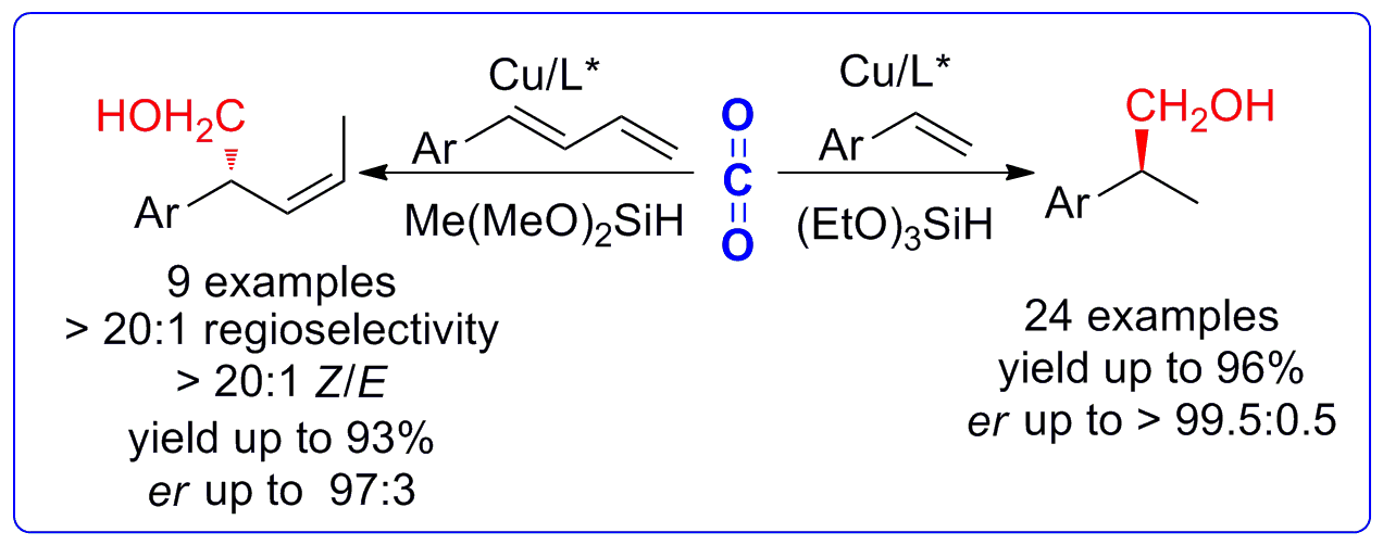 26. 贵永远, 陈小旺, 余达刚*,铜催化二氧化碳参与的芳基烯烃不对称硼羧化反应。有机化学,2024,44,1038-1040 (亮点评述)
